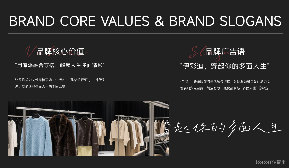 从视觉符号到空间体验,从运营规范到团队赋能,简米项目组为伊彩迪构建的不仅是一套 VISI 系统,更是一套贯穿品牌表达、消费体验与门店运营的完整解决方案。未来,伊彩迪将以这套系统为支撑,在中高端牛仔女装赛道持续发力,让 "风格无界,穿起多面人生" 的品牌主张,走进更多女性的生活场景。