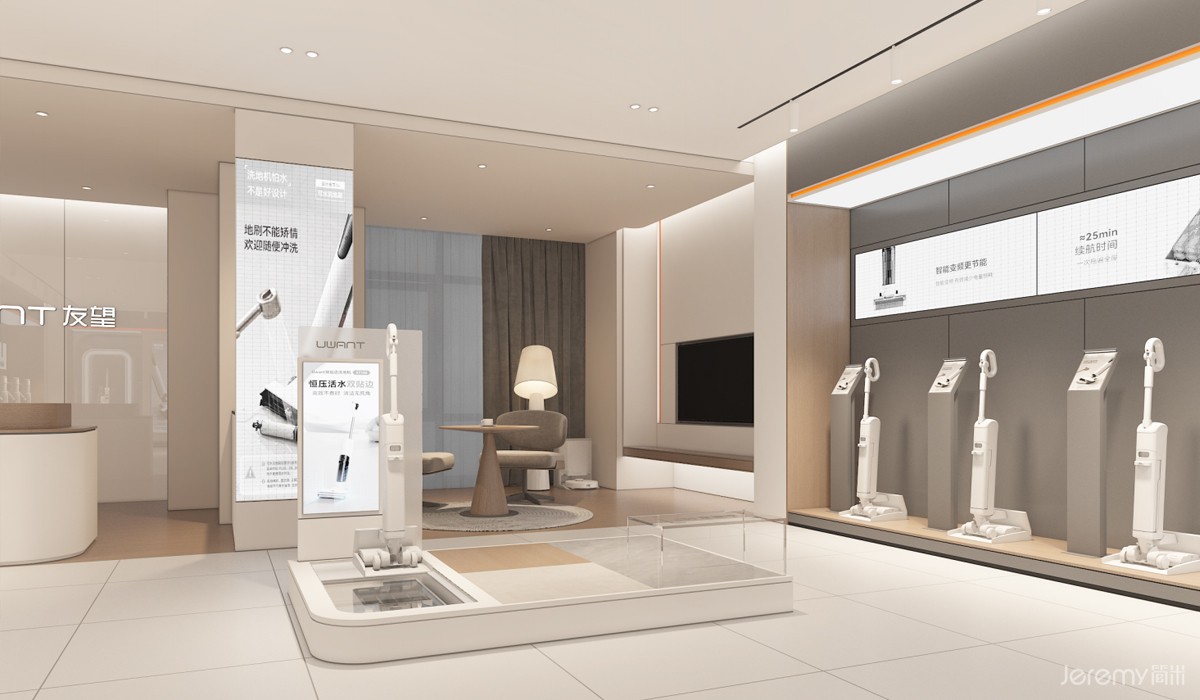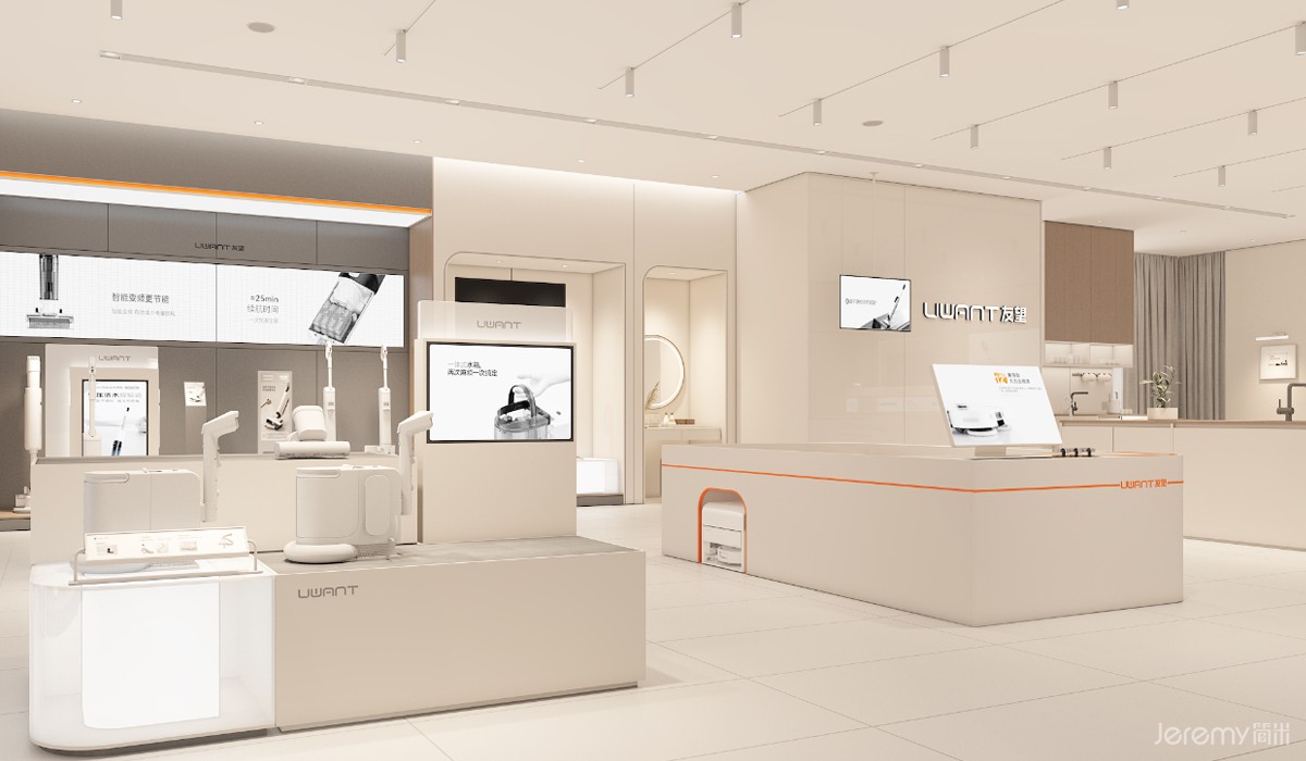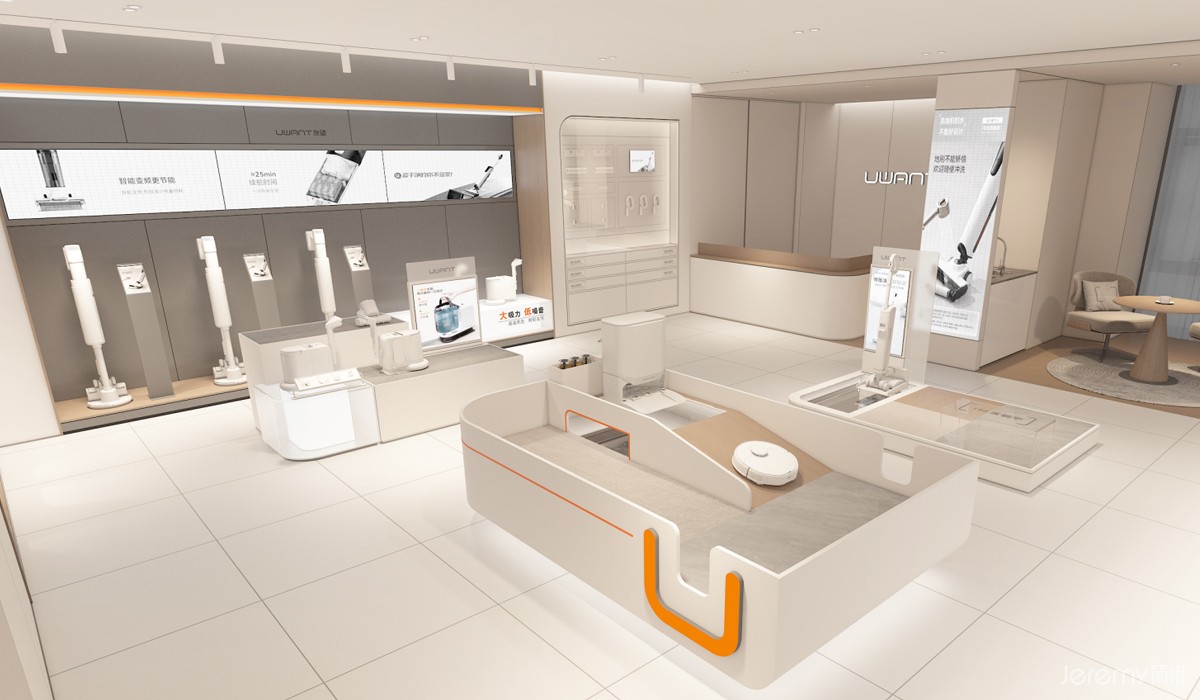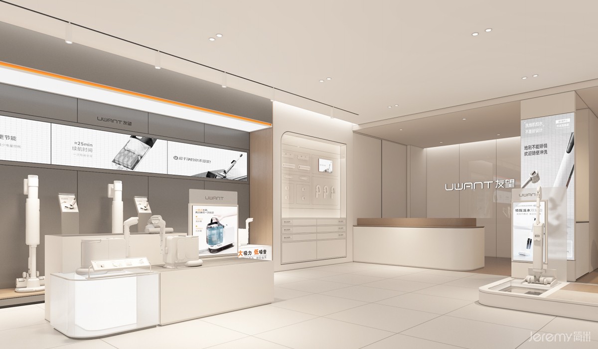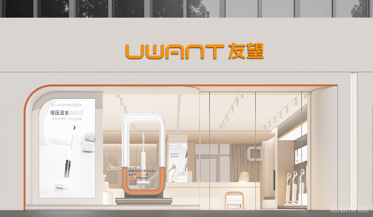 友望(UWANT)作为专注于智能清洁领域的新锐品牌,其形象与体验尤为重要。简米(Jeremy)受友望委托,为其打造一套兼具品牌辨识度、场景沉浸感与运营高效性的终端 SI(空间识别)系统,实现从品牌理念到终端体验的完整落地。