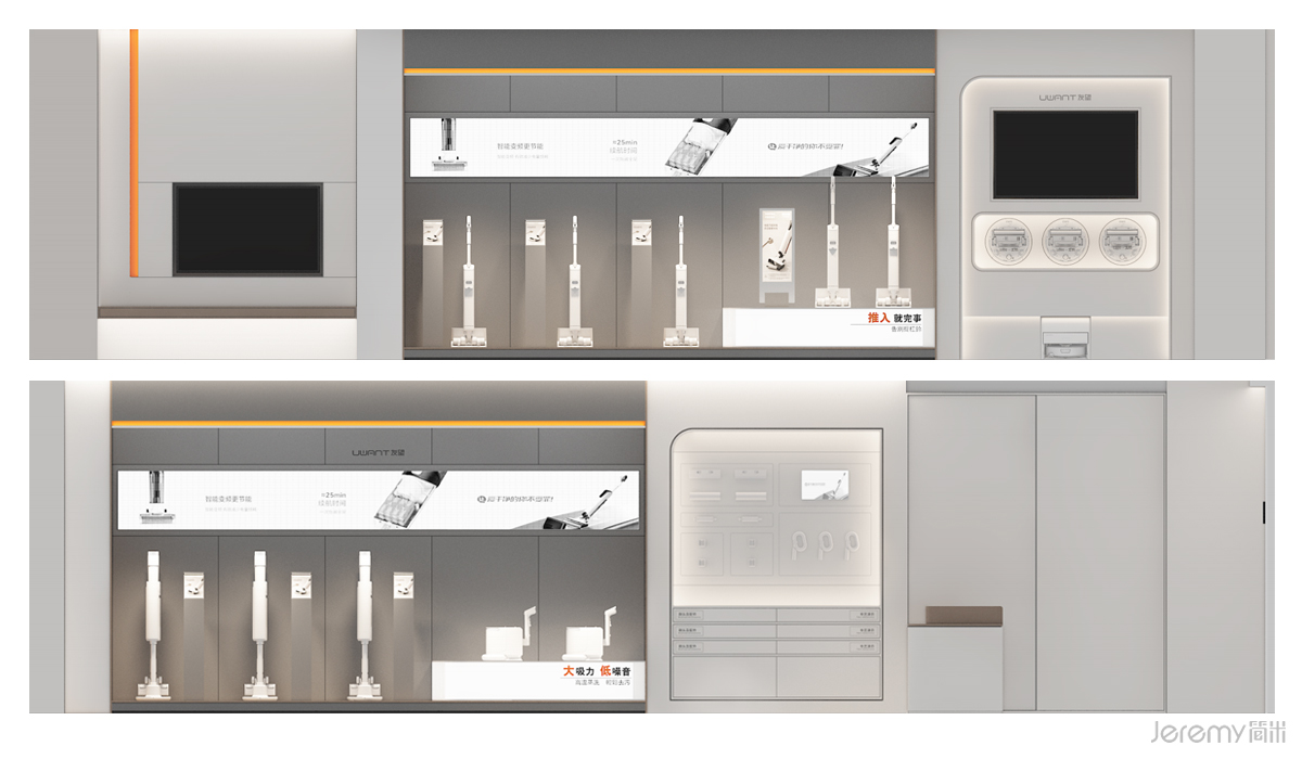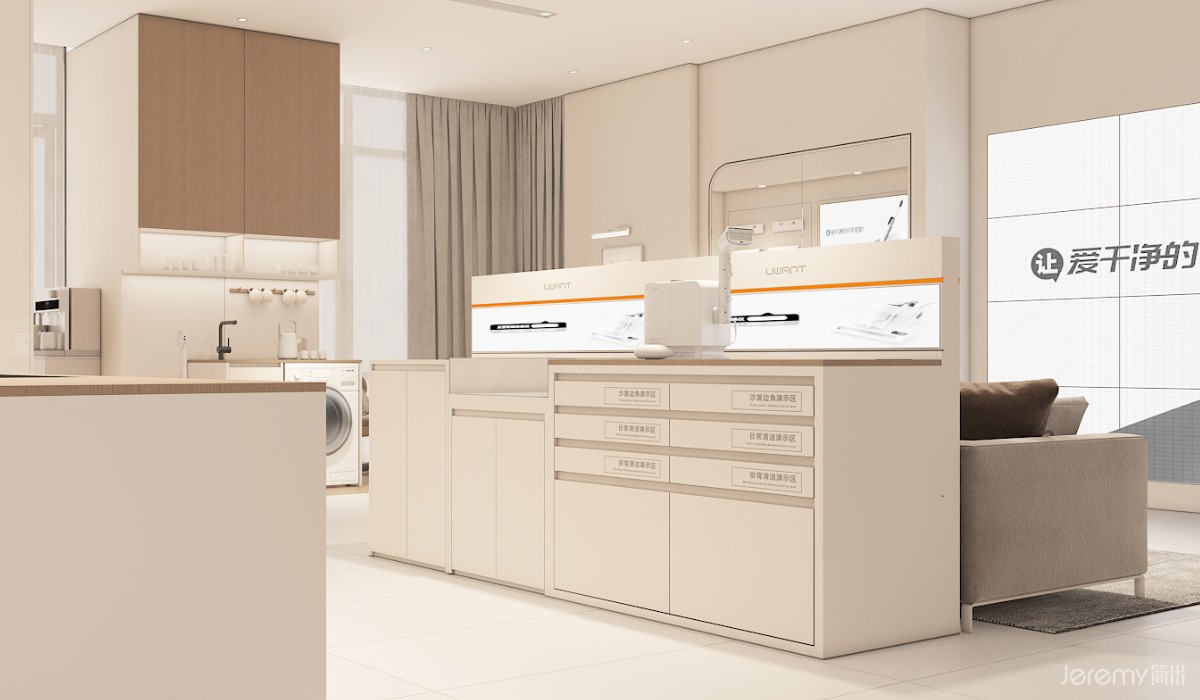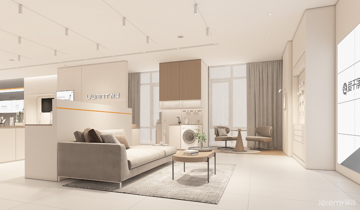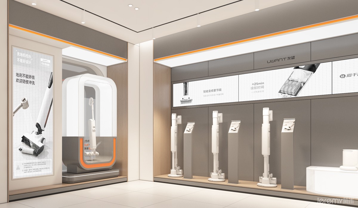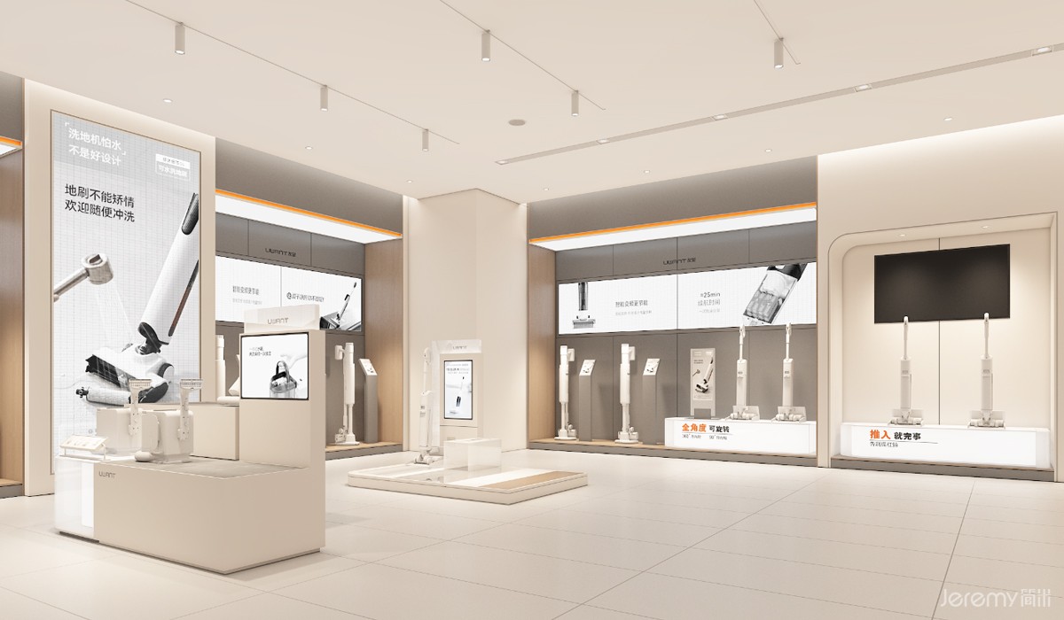 友望(UWANT)作为专注于智能清洁领域的新锐品牌,其形象与体验尤为重要。简米(Jeremy)受友望委托,为其打造一套兼具品牌辨识度、场景沉浸感与运营高效性的终端 SI(空间识别)系统,实现从品牌理念到终端体验的完整落地。