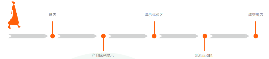 吸引进店 → 场景感知 → 产品体验 → 技术理解 → 信任建立 → 成交转化